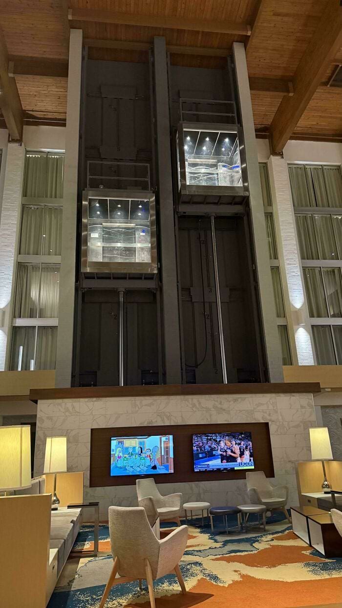 Эти гостиничные лифты оснащены поршнями, а не подвешены на тросах