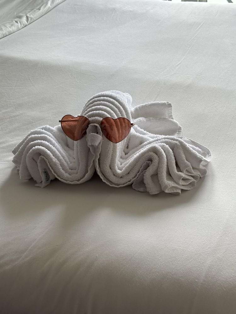 «Вернулся в свою круизную каюту и обнаружил эту фигуру из полотенца с моими солнцезащитными очками»
