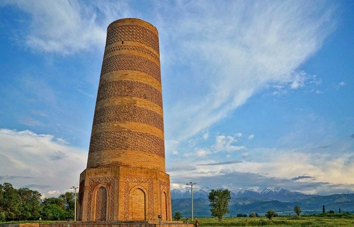 Башня Буран высотой 25 метров расположена в долине Чуй, к востоку от столицы Кыргызстана — Бишкека. Это единственный уцелевший фрагмент средневековой мечети, некогда стоявшей в процветающем городе Баласагун.