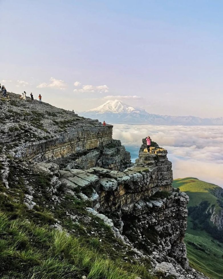 Самая известная смотровая площадка с видом на Эльбрус. Плато возвышается на 2500 метров и впечатляет само по себе: скалы причудливой формы, крутые обрывы, марсианские пейзажи, но главное — вид на Эльбрус. Фотографы и любители прекрасного часто приезжают сюда с ночёвкой, снимать Эльбрус под звёздами, Млечный Путь, встречать изумительные рассветы и любоваться закатами.