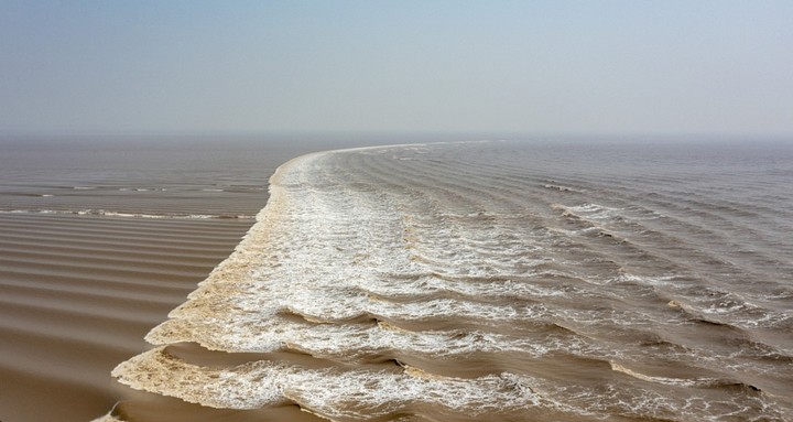 Река Цяньтан в Китае известна необычным природным феноменом — волнообразным приливом, напоминающим чешую рыбы. Это явление впервые было зафиксировано только в 2021 году и получило название «прилив в виде рыбьей чешуи».