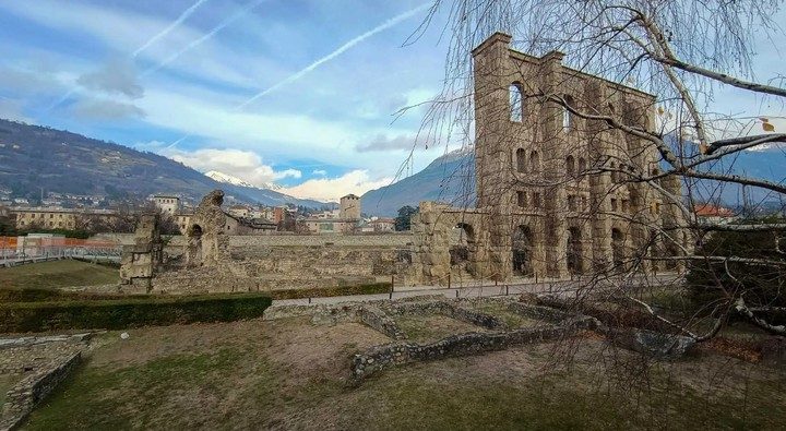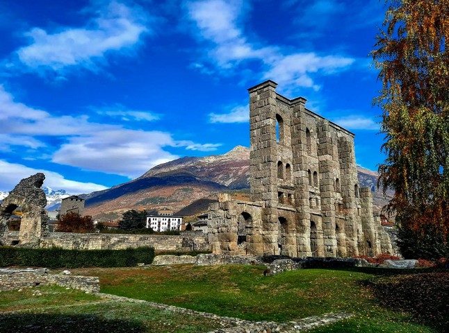 Аоста стала первой остановкой после трудного перехода через перевал Большой Сен-Бернар. Здесь путники и возвращавшиеся римские легионеры находили отдых и ощущали гостеприимство. Город был наполнен виллами, памятниками, статуями, парками, термами и крепостными стенами с внушительными воротами. Всё это создавалo впечатление процветающего центра Римской империи.