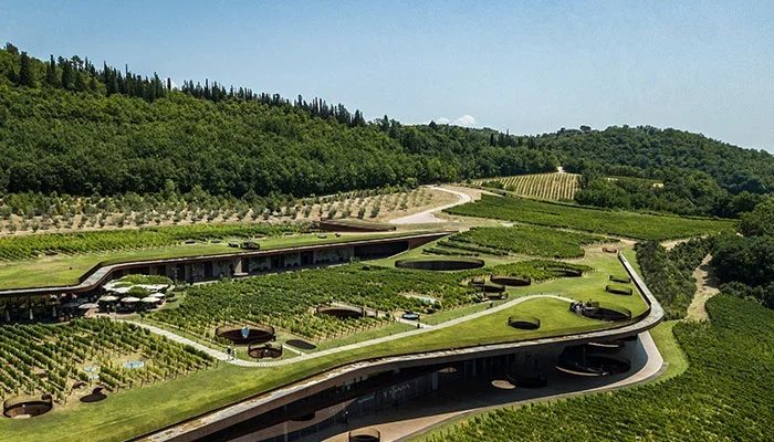 Среди множества известных тосканских виноградников с винокурнями винодельня Antinori выделяется не только своими исключительными напитками, но и прекрасным дизайном, и инновационным подходом к устойчивой архитектуре. Расположенная на живописных холмах, щедро покрытых виноградниками и оливковыми рощами на так называемом «плато Аппарита», над деревушкой Сан-Кашано в Барджине, Antinori по праву считается образцом гармоничного сосуществования современной архитектуры с природой, где мастерство и хозяйствование людей только во благо. Спроектированная специалистами архитектурных бюро Archea Associati и HYDEA, она не только полностью соответствует многовековым наработкам для поддержания необходимого технологического процесса, но и воплощает принципы устойчивого развития самого объекта. Реализованный проект ярко демонстрирует бережную интеграцию в сам холм и виноградники, не забирая полезную площадь.