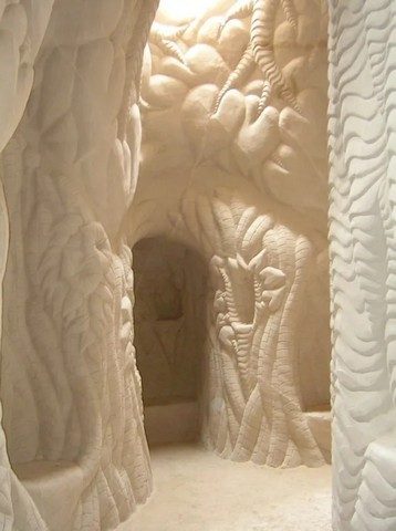 Ни одна пещера Поуэлетта не похожа на другую. В некоторых есть маленькие двери или окна на потолке, через которые проникает солнечный свет, в других — скамейки, вырезанные прямо в стенах, или глубокие ниши для мерцающих свечей. Стены украшены резьбой с изображениями цветов, абстрактных солнц и эмоциональных узоров, которые выглядят так, будто образовались естественным образом, поскольку они врезаны непосредственно в камень.