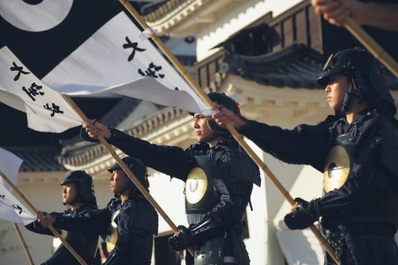Это реконструкция настоящей встречи японского господина: так встречали самого известного правителя замка Одзу Садаясу Като