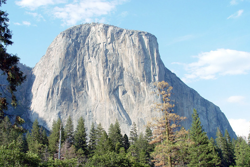 Гора нависает над долиной Йосемити. Эль-капитан считается крупнейшим в мире гранитным монолитом. Его вершина находится на высоте 910 метров. Это излюбленное место альпинистов и бейсджамперов.