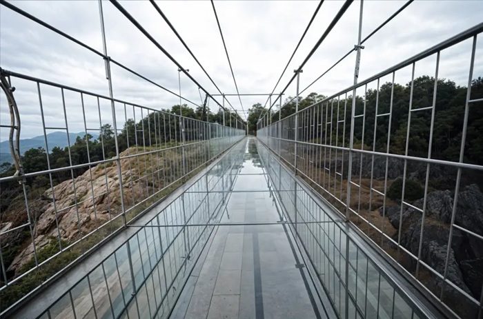 Стеклянная панель на самом длинном мосте из этого материала в мире.