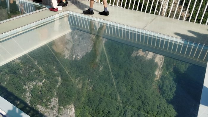 Один из стеклянных мостов с 3D-изображениями под панелями.