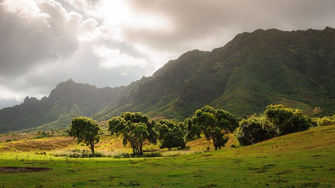 Горный массив Куалоа на острове Оаху использовался для съемок множества фильмов и ТВ-шоу, таких как Парк юрского периода и Лост.