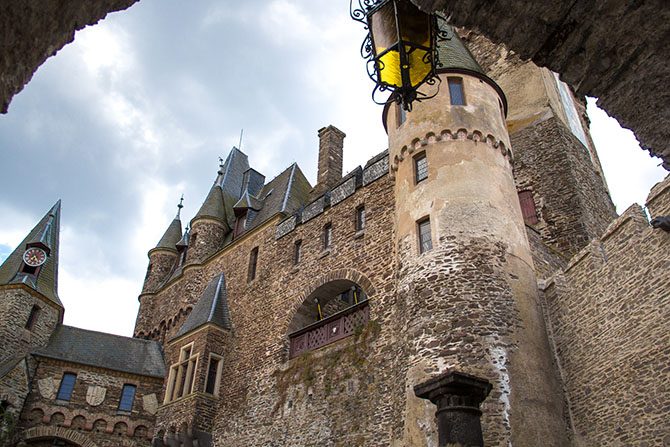Первое, что надо сделать в Кохеме – это подняться на замок. Замок был построен около 1000 года, в 1689 году его сильно разрушили французы в одной из региональных войн. Восстановлен замок был во второй половине 19 века берлинским миллионером (кстати, французского происхождения) Луи Равене, а в 1940-х годах наследники продали замок государству.