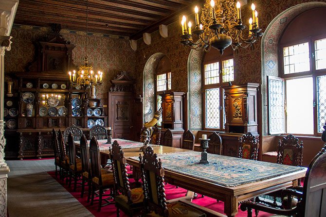 Внутри замок прекрасен. Основная обстановка – 19 века, но много отдельных, более старинных предметов, особенно оружия. Экскурсии проводятся на разных языках, устно на немецком, английском, французском, голландском; на русском, говорят, есть аудиогид, если идти группой.