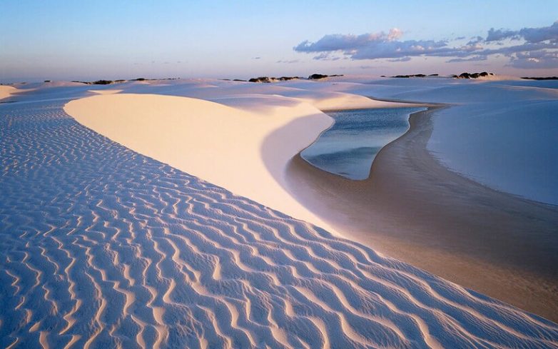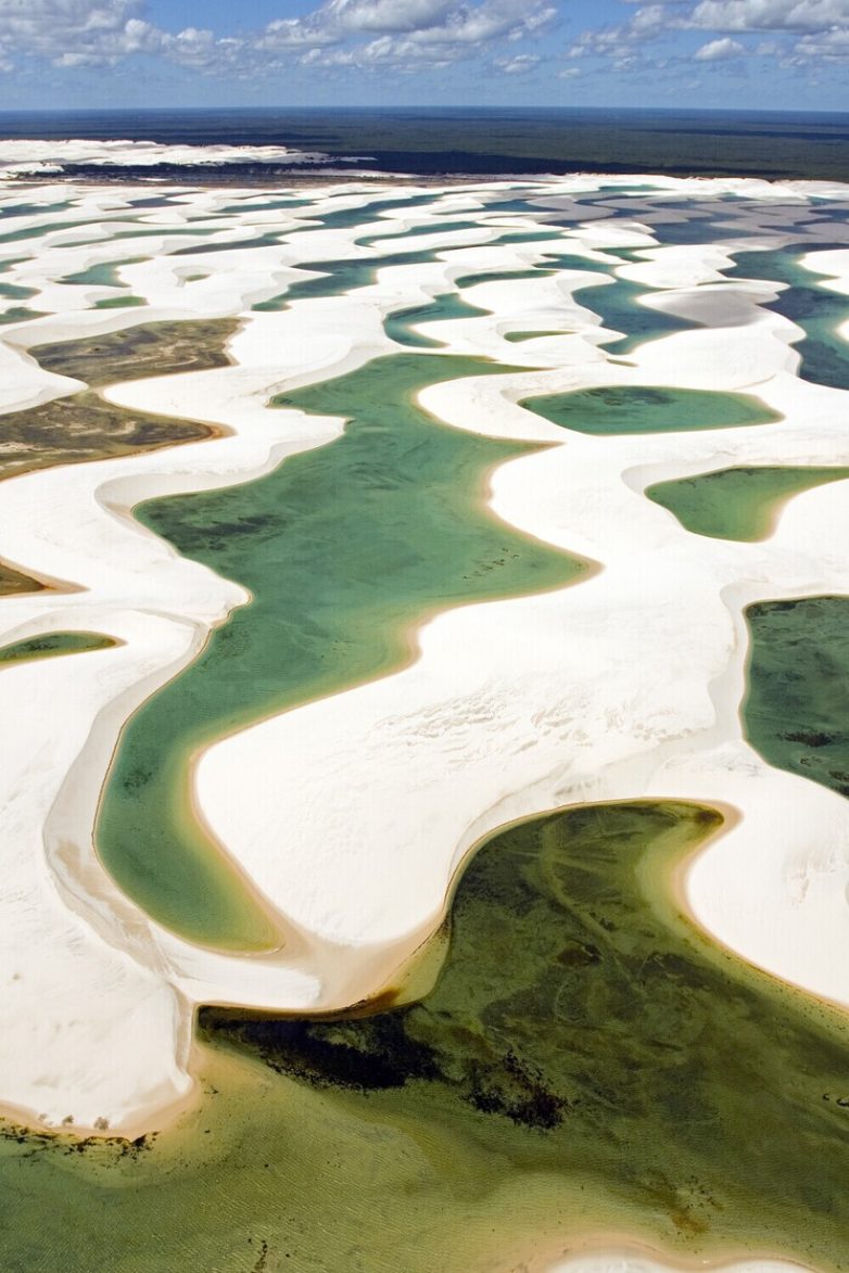 Белоснежные дюны, лазурные лагуны и постоянно меняющийся пейзаж ― так выглядит один из самых невероятных уголков земного шара. Мы говорим о бразильском национальном парке Ленсойс-Мараньенсис, который протянулся на 155 тысяч гектаров. Здесь можно наблюдать удивительное сочетание пустыни и тропиков. За это парк попал в список ЮНЕСКО.