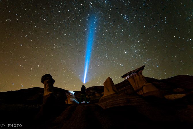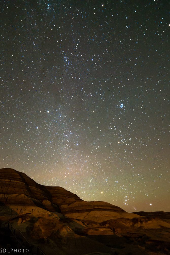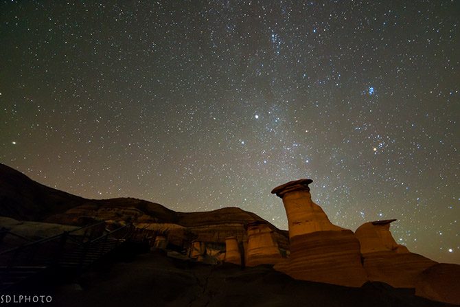 Из рассказов блоггера: Для хорошего звездного неба мало иметь безлунную ночь, надо чтобы еще и облаков не было. А с этим у нас сейчас намного сложнее. Наконец пришла осень, принеся с собой пасмурную погоду. Прогноз погоды показывал облака во всех направлениях от Калгари. Какова же была моя радость, когда я увидел, что пятничный прогноз на Драмхеллер поменялся и ночь там ожидалась абсолютно ясная.