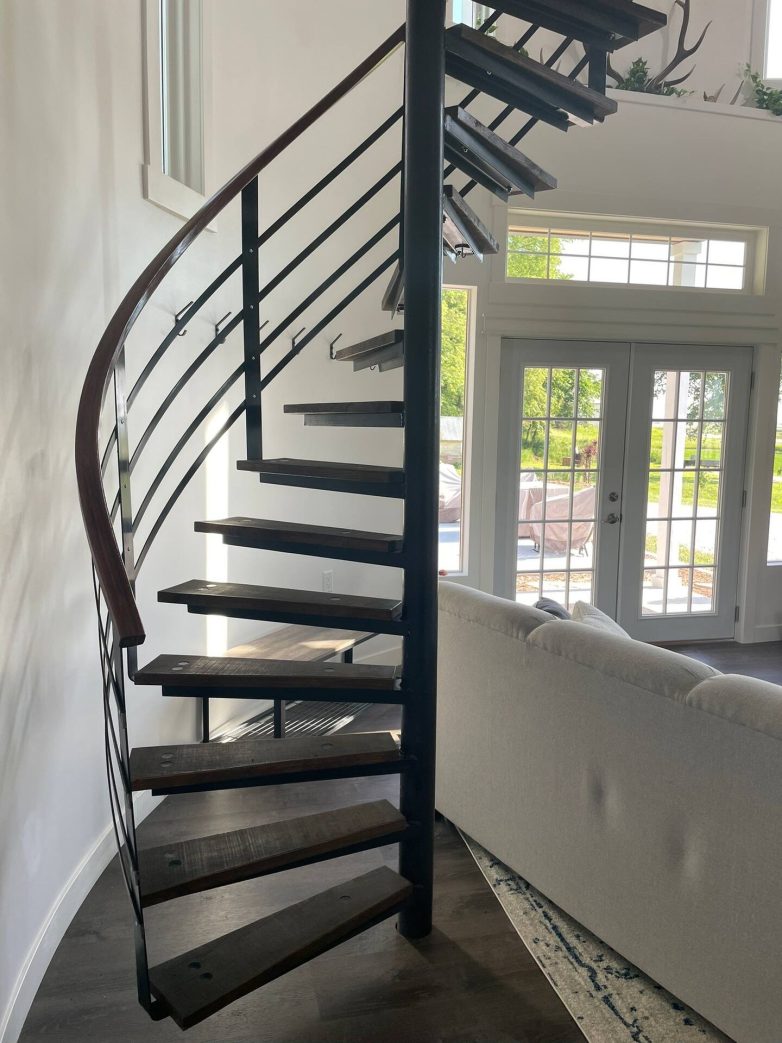 Винтовая лестница стала украшением интерьера гостевого дома Grain Bin Getaway.