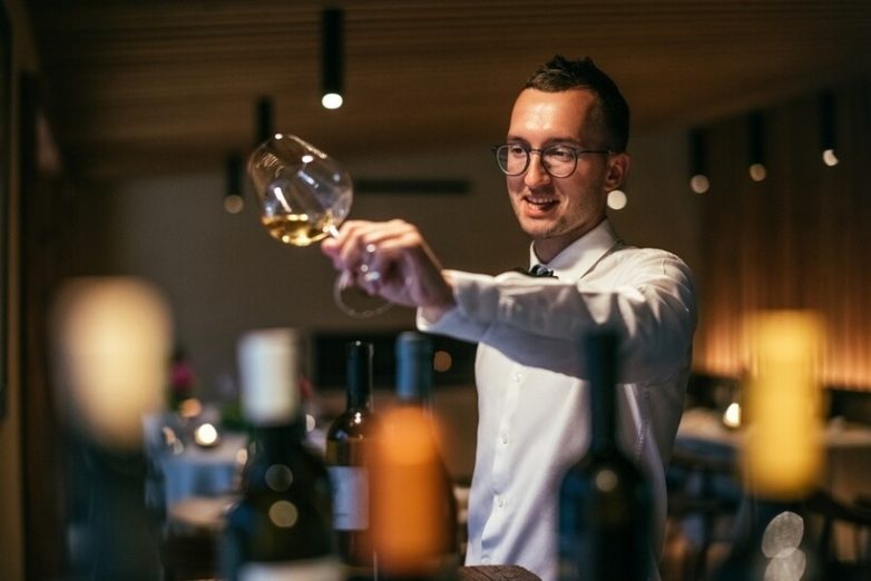А сын Филип работает сомелье и официантом