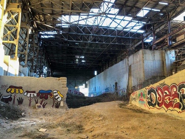Со стороны забора с предупреждением ВХОД ЗАПРЕЩЕН место кажется ничем не примечательным. Завод прекратил работу в 1970-х годах, и с тех пор строительные компании свозили сюда тысячи вагонов строительного мусора. Кроме ряда силосов и 76-метрового дымохода, на территории почти ничего не осталось. Но если присмотреться, можно заметить признаки чего-то величественного — того, чем это место могло бы стать.