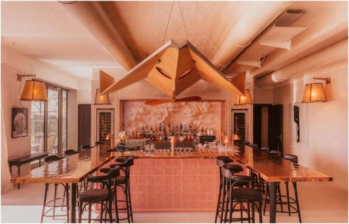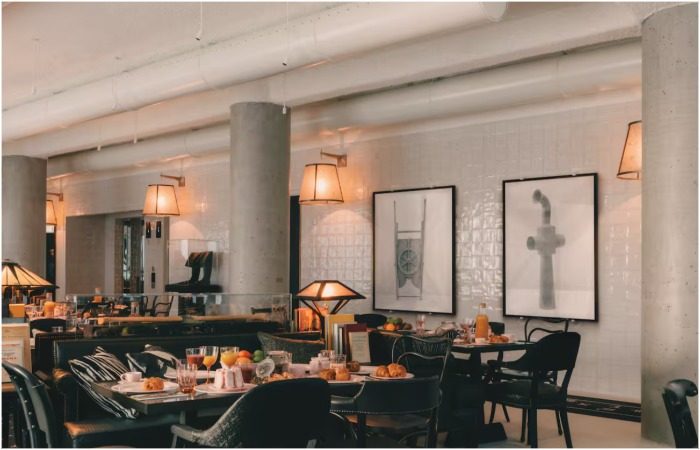 На первом этаже расположен ресторан La Cuisine de Rose, работающий весь день. Старк задумывал его как материализованное чувство — подарок, сотканный из нежности, мечтаний и вкусов, который Манфред преподносит своей идеальной возлюбленной, Роуз. Пространство, залитое светом, выполнено в светлых тонах с розовыми акцентами у барной стойки. Атмосфера пронизана теплом благодаря мебели в коричневых оттенках.