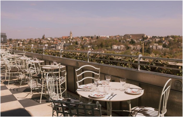 На верхних этажах расположены гостиные и столовые общей площадью 300 кв. м, предназначенные для самых разных сценариев — от деловых встреч и винных дегустаций до литературных чтений. Кульминацией путешествия становится девятый этаж La Maison de Manfred — пространство, воссоздающее атмосферу унаследованного им дома. Здесь, в обеденном зале под крышей, воцаряется атмосфера вневременного уюта, созданная за счет натурального дерева, кожи, терракотовой плитки и мягкого освещения. С террасы открывается панорамный вид на Мец, завершающий погружение в историю.