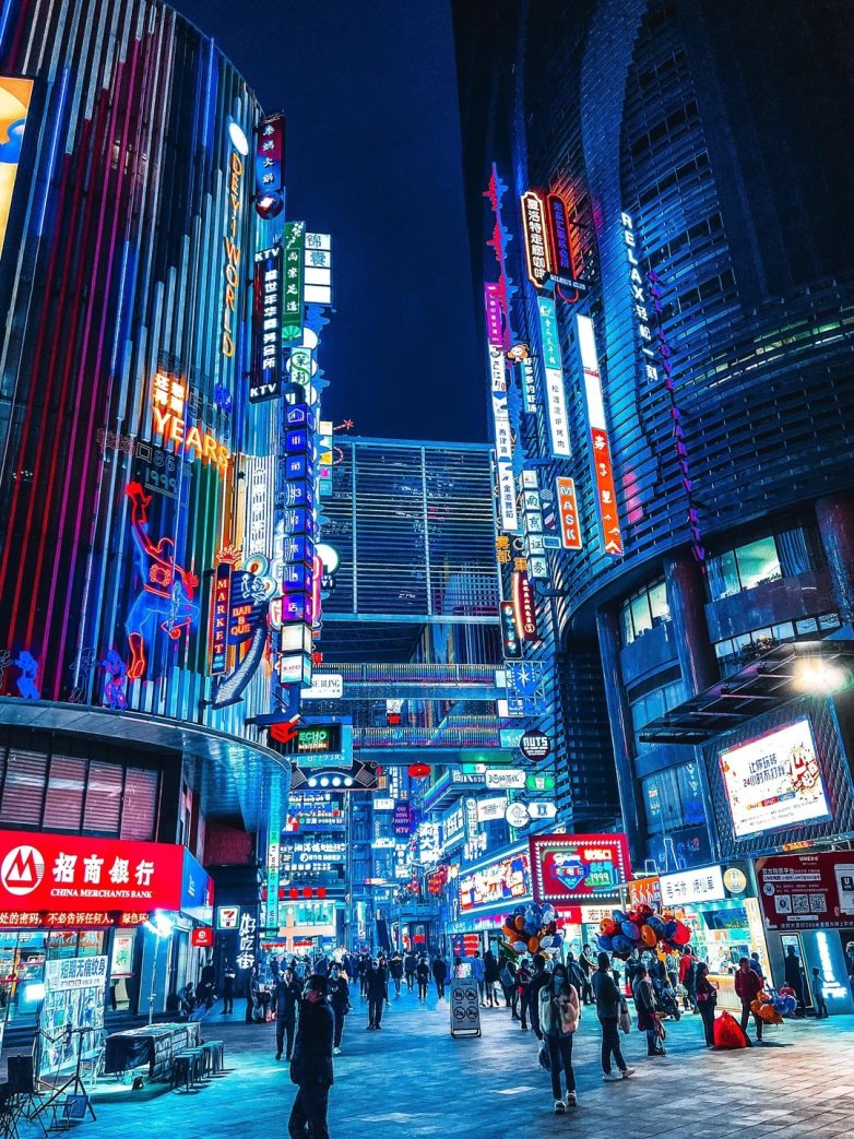 Цзефанбэй — торговый район, ослепительно сверкающий с наступлением темноты.
