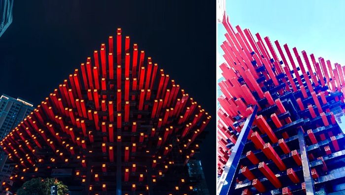 «Пещера Хунъя», расположенная на скалистых склонах реки Цзялин в районе Юйчжун, является 11-этажным комплексом, переосмысливающим традиционные дома на сваях «дяоцзяолоу» в вертикальном городском контексте. Днем архитектурный лабиринт, состоящий из ресторанов, чайных и ремесленных лавок позволяет познакомиться с культурным наследием Чунцина или насладиться живописными видами. А вот в ночное время многофункциональный комплекс сам превращается в шедевр, элементы которого мастерски подсвечиваются.