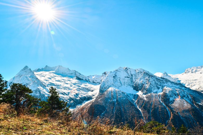 Домбай — поселок в межгорье у северного подножья Кавказского хребта. Отсюда одинаково близко до Черного моря и до Эльбруса.