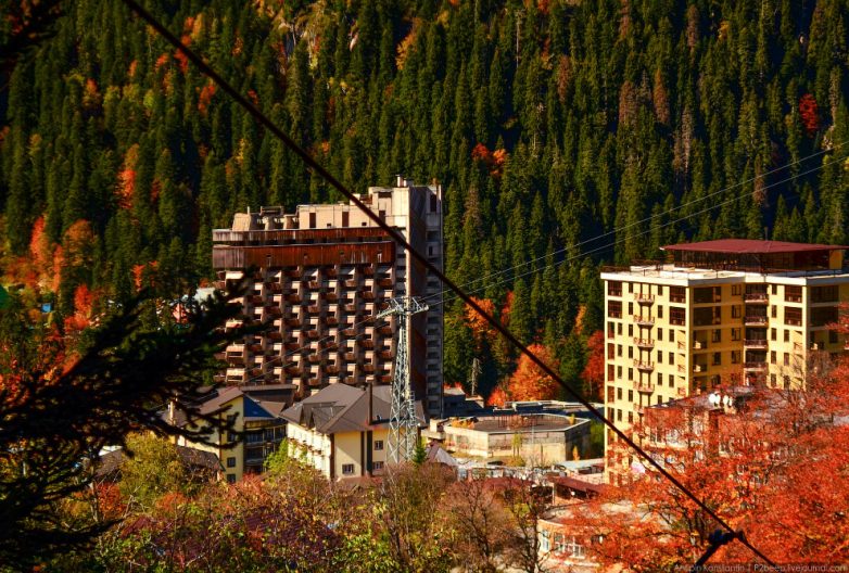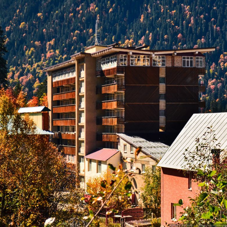 Но главная проблема — это бесконтрольная застройка частными коттеджами. Советские архитекторы в свое время сделали все, чтобы максимально органично вписать туристические комплексы в окружающую среду. Довольно редкий пример использования дерева вкупе с бетоном.