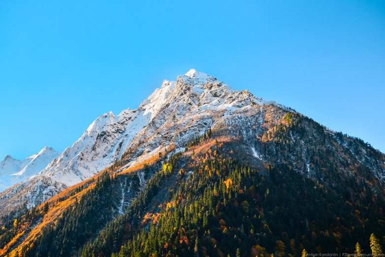 На Домбае я был осенью 2013 года во время поездки в Кисловодск. И до сих пор нахожусь под сильным впечатлением от увиденного. Редко природа заставляет меня так восхищаться ею. Фотографом я тогда был еще неопытным: раскрыв рот, снимал все вокруг, не зная, на чем остановиться, ведь красота везде! Поэтому мне пришлось потрудиться, чтобы выжать из этих материалов хоть что-то, передающее то настроение…
