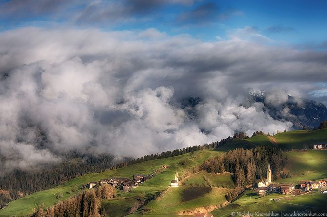 В этом посте хочу показать своеобразную фотоисторию одного съемочного утра в Доломитовых Альпах. Стремительно меняющаяся погода, туман и облака, дождь и солнце – все это было в одно утро…