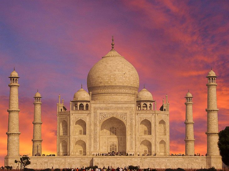Его строили 22 года, собрав со всех концов страны более 20 000 человек, совместив воедино элементы индийского, исламского, персидского и турецкого стилей. Для постройки использовался уникальный белый и розовый мрамор из расположенной в 330 километрах каменоломни…