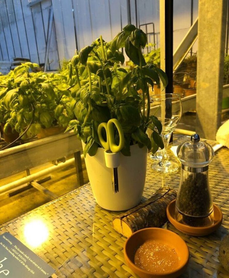 В этом ресторане стоит базилик в горшочках, чтобы посетители могли его подрезать