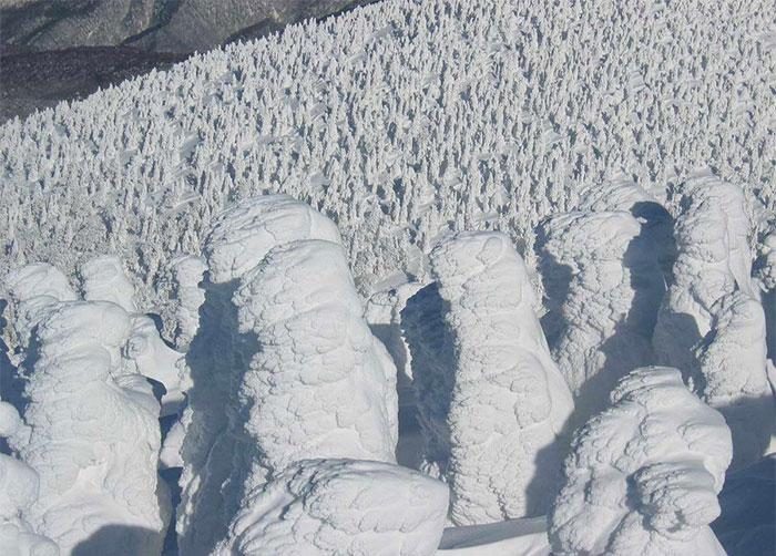 Ледяные сибирские ветры приносят с собой в Японию огромное количество снега, формируя причудливые снежные формы.