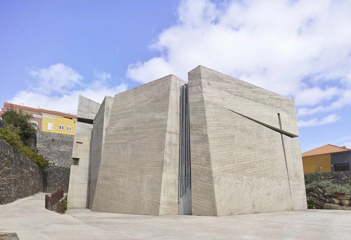 Архитектор намеренно отказался от традиционной церковной эстетики. Вместо классической симметрии — четыре самостоятельных объёма, собранных как скульптурная композиция. Вместо отделки — грубый бетон, напоминающий о вулканическом происхождении Канарских островов. Даже источники света здесь особенные: солнечные лучи проникают внутрь через узкие разрывы в стенах, заполненные металлом и стеклом, создавая эффект «живого свечения».