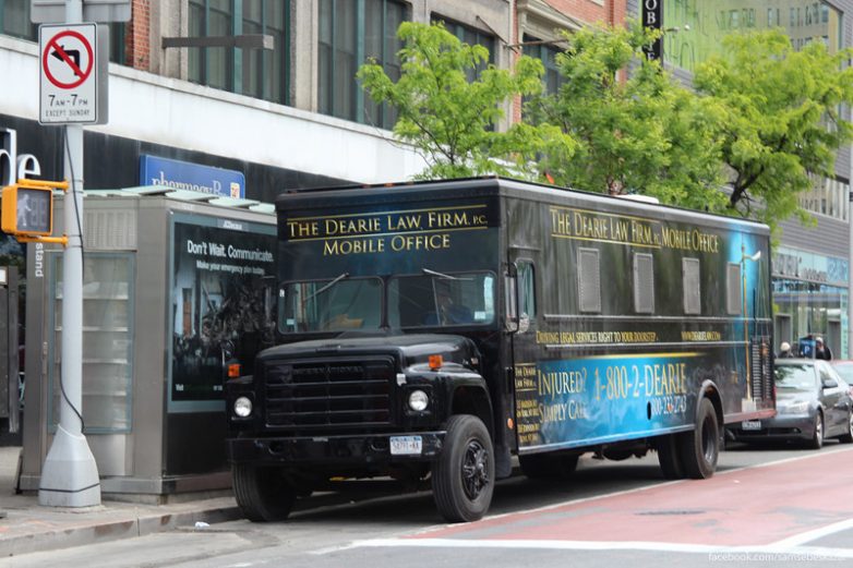 Солу Гудману на заметку. Юридический офис на колесах в Гарлеме. Был припаркован на 125-й улице. Решетки на окнах то ли не дают клиентам сбежать, не заплатив, то ли сразу готовят их к незавидному будущему :) Еще возможно, что адвокат там же и живет и таким образом пытается защитить свое скромное жилище и важные документы, хранящиеся в нем. В общем, если что, то Better Call Dearie :)