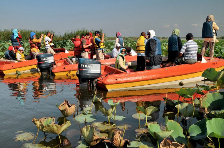 Лагуна Энзел в Каспийском море. Тёплая и влажная погода позволяет выращивать в этом регионе такие сельскохозяйственные культуры, как чай и рис, которые требуют большого количества воды. Особенно благоприятствует этому слив вод с гор Эльбурса. А еще это идеальное место для наблюдения за птицам.