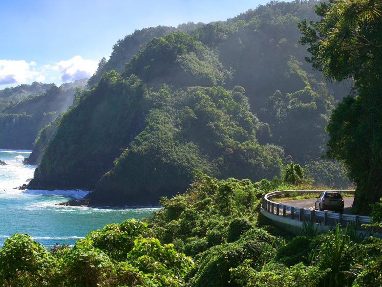 Дорога на Хану, пролегающая мимо бамбуковых лесов, водопадов и пышных тропических лесов вдоль северного побережья острова Мауи.