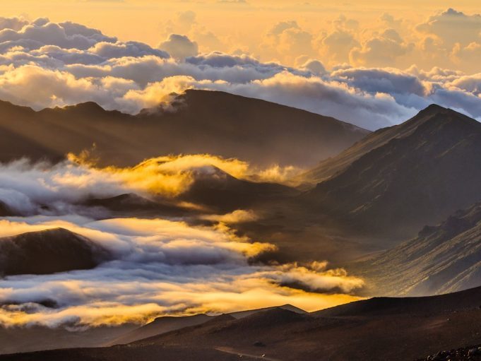 Незабываемый восход солнца над Национальным парком Халекакала на острове Мауи.