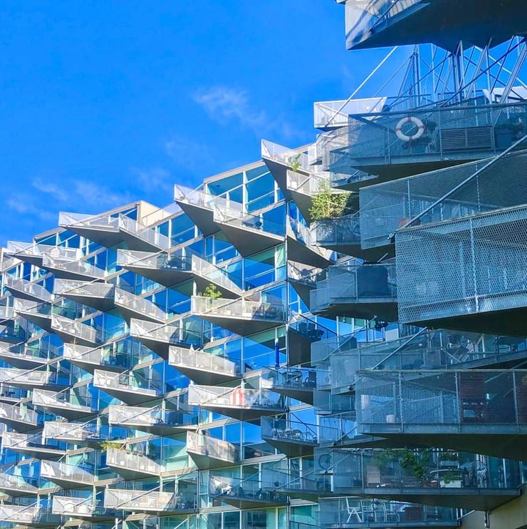 Жилой комплекс V House в районе Эрестад на юге Копенгагена выглядит так, будто архитекторы позволили себе немного дерзости и фантазии. Его угловатые балконы, напоминающие иглы ежа, не только формируют запоминающийся облик, но и служат практической цели — наполняют квартиры солнечным светом.