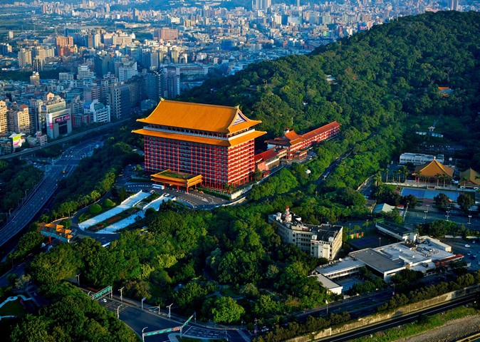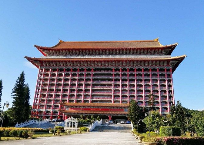 По инициативе его супруги Сун Мэйлин было принято решение о строительстве масштабного отеля в традиционном архитектурном стиле. Завершённый в 1952 году комплекс выделялся позолоченной черепицей, массивными красными колоннами и выразительными декоративными формами. При высоте около 87 метров он в течение нескольких лет оставался самым высоким зданием на Тайване и быстро превратился в узнаваемую городскую доминанту.