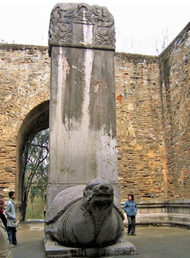 Отказавшись от нереализуемого замысла, император установил для своего отца гораздо более скромную стелу Шэнгун Шэндэ в Сяолинском мавзолее. Она опирается на каменную черепаху и достигает высоты около девяти метров — значительно меньше первоначального проекта, но всё же впечатляюще по своему художественному и символическому значению.Несмотря на жестокость правления, Юнлэ оставил заметный след в истории Китая. Он перенёс столицу в Пекин, инициировал строительство Запретного города, восстановил Великий канал и поддержал дальние морские экспедиции, расширившие влияние Китая далеко за пределы Восточной Азии.