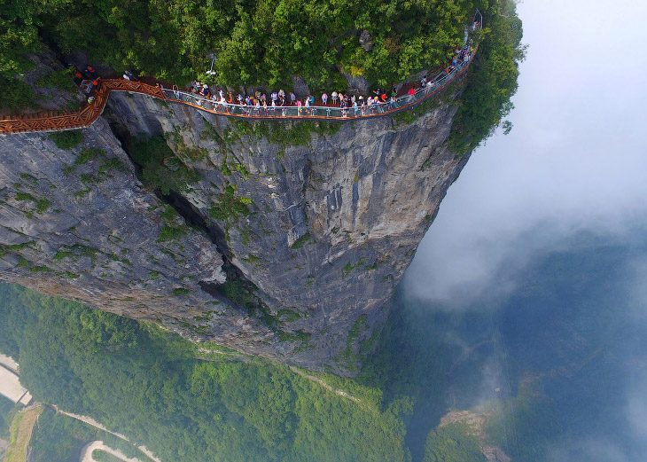 В китайской провинции Хунань, на высоте 300 метров над землей открылся небесный стеклянный мост, откуда открываются впечатляющие виды.