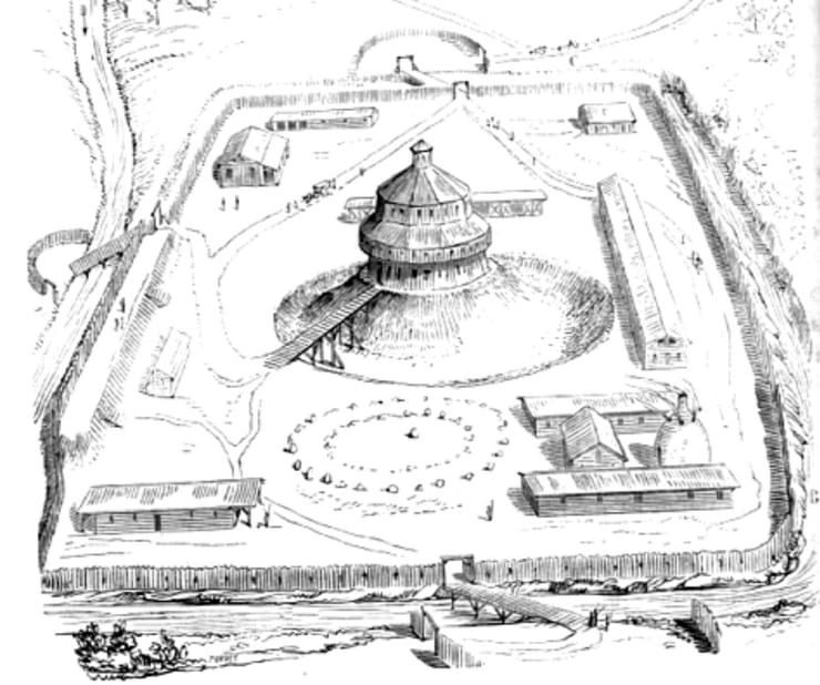 Шато де ла Мотт (Chateau de la Motte) берет свое название от маленького лесного холма рядом с современным зданием — моты, что в старофранцузском означало «глыба земли». Этот холм является остатком викингского или нормандского замка мота-и-бейли, распространенного в XI–XIII веках. Первые такие сооружения строились для укрепления власти нормандских лордов и защиты границ от вторжений из Мэна и Бретани. Основные элементы включали насыпи с деревянной башней, внутренний двор с хозяйственными постройками, и ров с подъемным мостом.