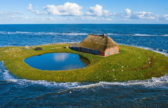 Речь идет об островах Халлигены, что расположены между Данией и Германией. Они регулярно полностью уходят под воду. Но люди продолжают на них жить. Справедливости ради стоит отметить, что живут люди на возвышенностях, которые остаются над водой. Но вся остальная площадь острова оказывается затопленной. Порой жители островов оказываются окружены водой на недели. Но они упрямо остаются и отказываются сменить место жительства.