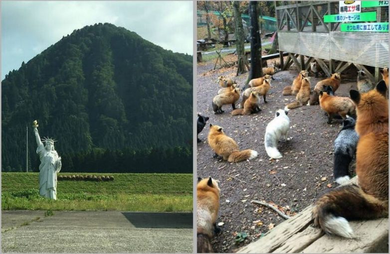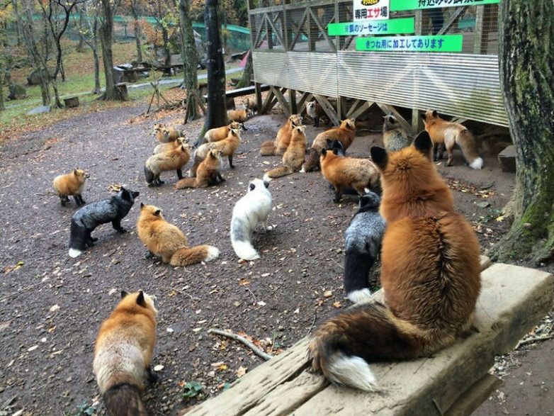 В Японии есть лисья деревня, где посетители гуляют среди ручных лис, свободно бегающих по территории