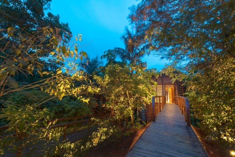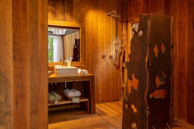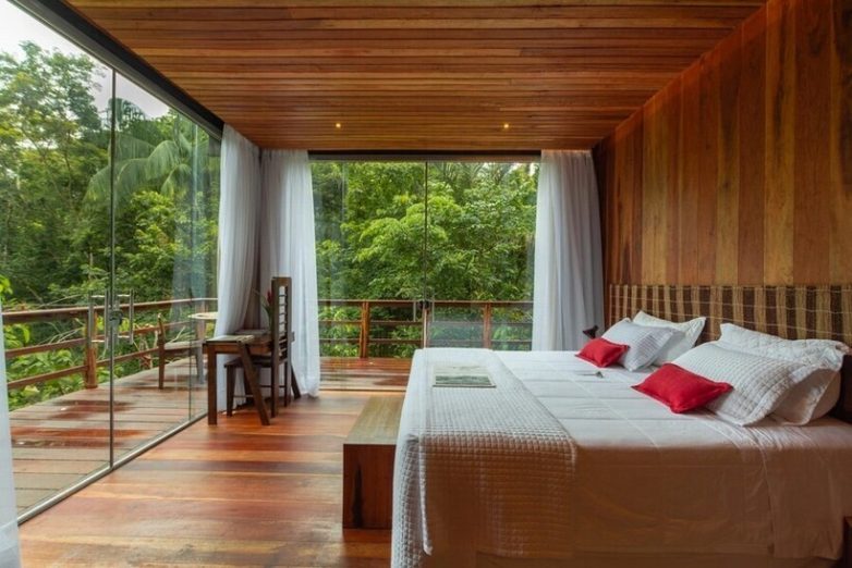 Интерьеры выдержаны в естественных тонах Амазонии: натуральные ткани, дерево, плетеные изделия