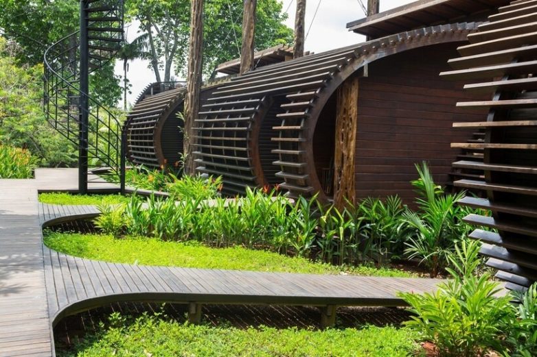 Отель в форме перевернутых лодок, которые находятся среди чудес Амазонии.