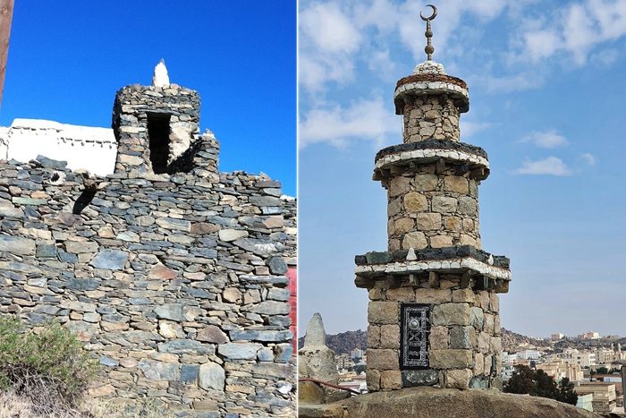 Пока в большинстве регионах королевства культовые сооружения отличались сдержанной элегантностью, в Хиджаза (западная часть) ситуация была совсем иной. Близость его к Красному морю и оживленные торговые пути принесли влияние из разных стран. Минареты Мекки и Медины стали отражать вкусы и технику османских и мамлюкских мастеров, которые внесли свой вклад в архитектурный облик полуострова. Их стремление к замысловатой детализации и высоким цилиндрическим формам в первую очередь нашли отражение в структуре минаретов.