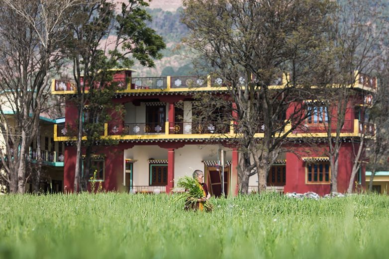Да-да, в монастыре натуральное хозяйство — несколько коров, одна из которых через неделю должна отелиться, хвастается один из монахов. За коровами смотрит индиец Джеси, молчаливый и добрый мужчина средних лет, который живет и работает в монастыре. Джеси очень скромный, с крупными чертами серьезного лица. И тем удивительнее выглядят на этом лице добрые, улыбающиеся изнутри глаза. Коровы стоят в стойле, свободного выпаса нет. Несмотря на большое количество места, каждый метр используется. Например, монастырь окружает большое рисовое поле. Поэтому траву для коров приходится приносить специально. А перед тем как дать коровам, ее еще и перемалывают в старой железной механической траворезке. Провернуть ручку с большим ножом требует усилий даже от сильного мужчины, поэтому резать траву в помощь фермеру всегда выстраивается очередь из молодых монахов. Каждый делает по несколько движений, устает и уступает место следующему. Работа превращается в веселое соревнование — кто сможет сделать больше оборотов. Один из старших ребят стирает руки в кровь о железную рукоять и довольный бежит к крану с водой, чтобы их вымыть. Все смеются, трава порезана, у коров есть еда, монастырская жизнь продолжается дальше.