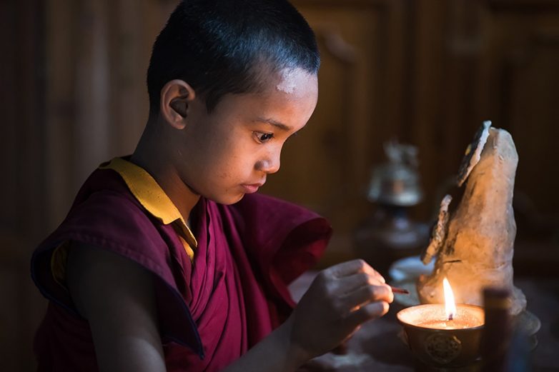 Дорога петляет среди рисовых полей. Мы на севере Индии. Я немного волнуюсь: сейчас сбудется моя давняя мечта — пожить в настоящем буддийском монастыре. Поскольку буддизм не только религия, но и философия, то путь к просветлению всегда начинается с обучения. По этому принципу монастыри делятся на институты, в которых дается начальное образование, здесь в основном живут молодые монахи, многие из которых еще не приняли монашеские обеты. В других живут и учатся дети постарше. И есть монастыри, в которые вообще нет обучения, а только буддийская практика. Чтобы стать монахом и приступить к практике, сперва нужно пройти все циклы обучения. Одна из высоких степеней, которую получает монах, закончив обучение, — звание Геше, это как ученая степень, которая позволяет учить других монахов. Я, как и положено начинающим, приехал в монастырь начального уровня, в котором, кроме несколько взрослых монахов, живут и учатся дети от 10 до 16 лет.