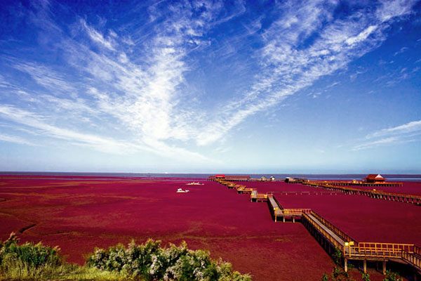 Красный пляж Панцзинь (Panjin Red Beach) — одно из самых колоритных природных достопримечательностей Китая.