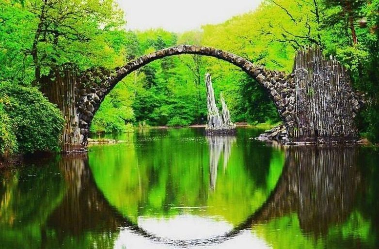Мост Ракоцбрюке в Германии поражает своей формой: в отражении воды он выглядит как идеальный круг